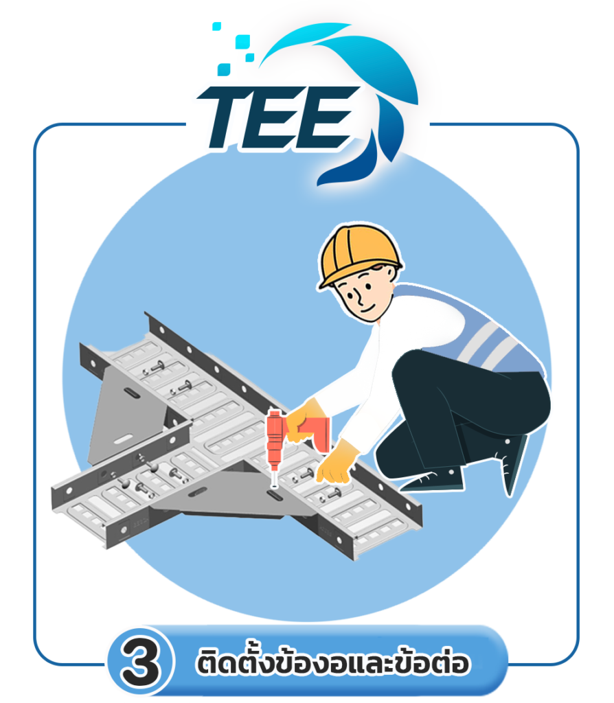 วางรางเดินสายไฟหรือรางไวร์เวย์ในตำแหน่งที่ต้องการติดตั้ง ใช้ข้อต่อรางและน็อตในการยึดรางเข้าด้วยกัน